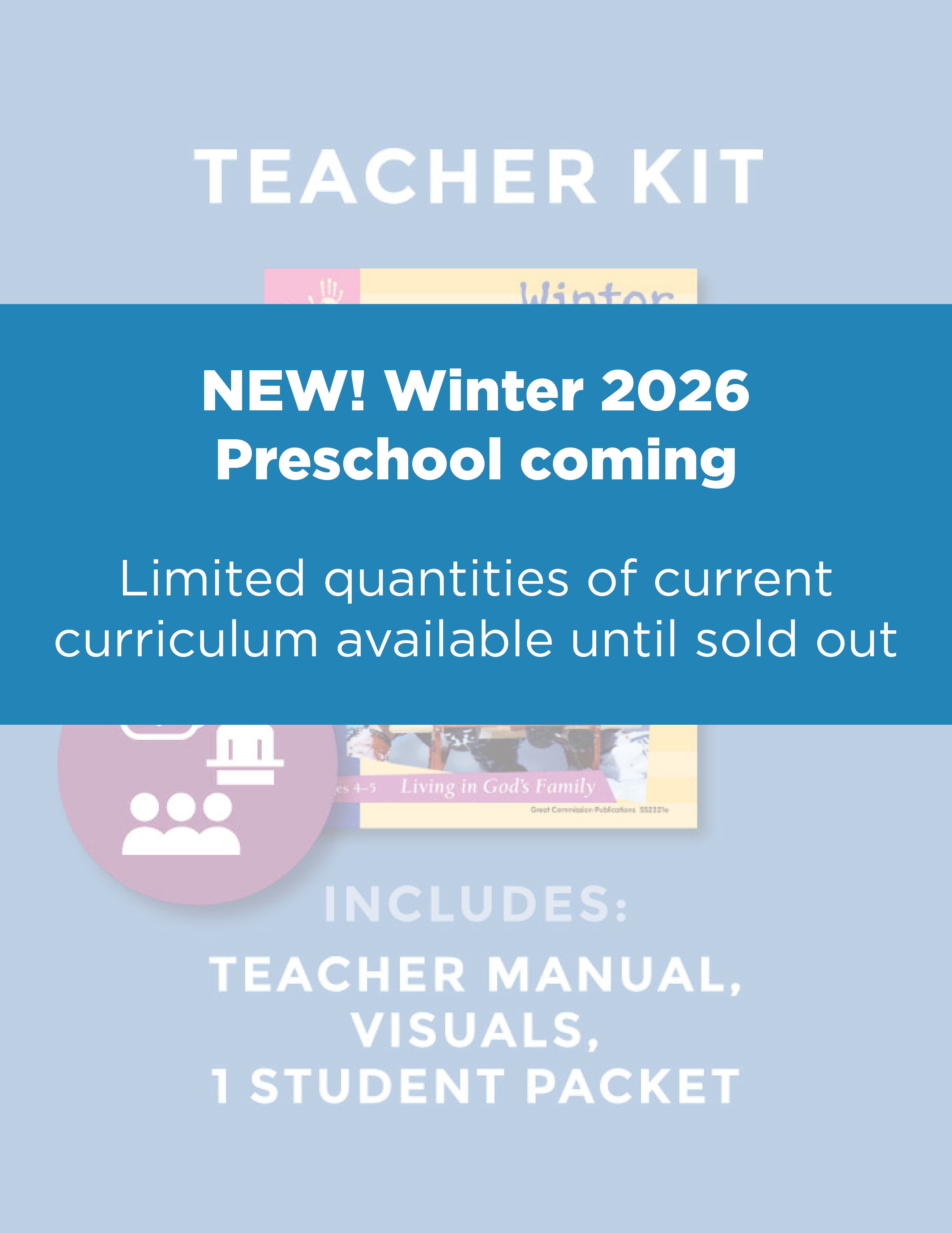 Teacher's Kit includes a user-friendly Teacher's Manual with 13 complete lessons, 100+ pages of detailed lesson plans, a weekly teacher devotional, and colorful teaching aids on high-quality paper. Also, 1 Student Pack with creative in-class activities to engage hearts and hands, and weekly (13) take-home papers that form an essential home connection: Parents can read the Bible story to their little ones, have family devotions, and use activities and prayers to reinforce the truths to their children all week.