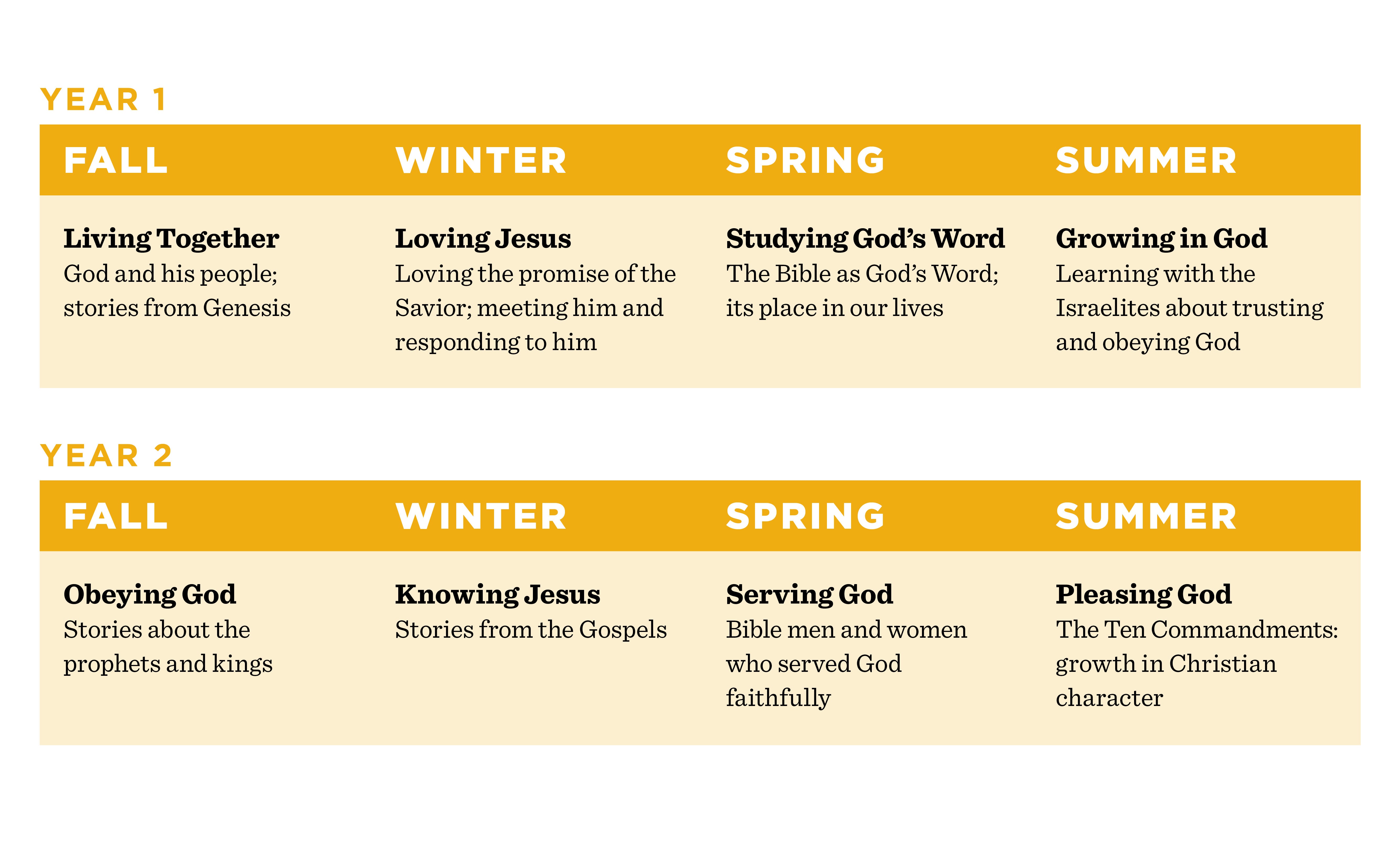How can we impress young hearts with such amazing things? Through Bible stories! The Bible provides one story of God’s redemptive-historical work through Christ. When they are taught Bible stories, children see God at work. Each lesson points them to Christ. The goal is for our young children to learn to trust and obey God’s promises, understand the importance of God’s Word, and personally respond to Jesus.