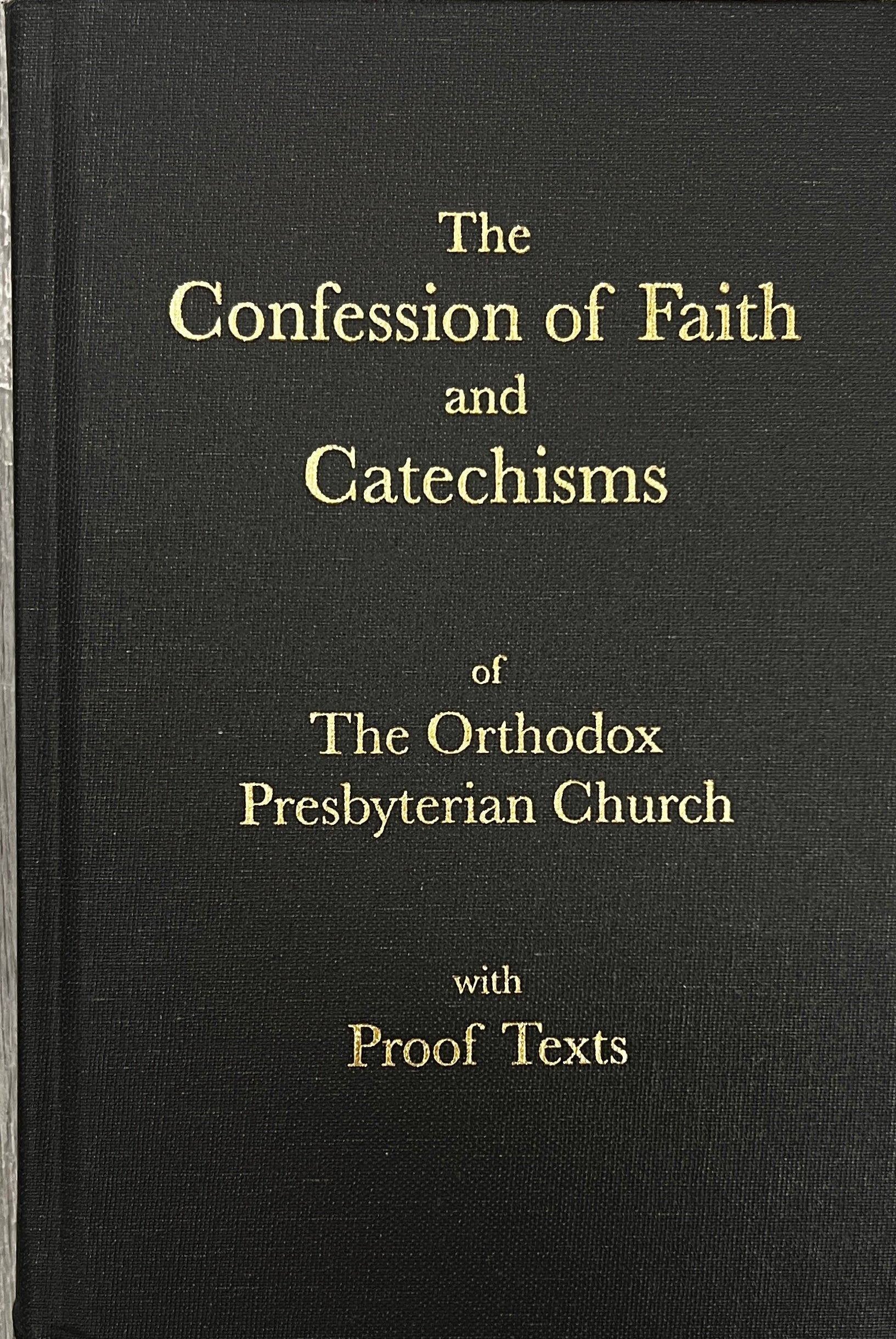 5" x 7.5" hardback book, Orthodox Presbyterian Church edition with proof texts written out. 450 pages.
